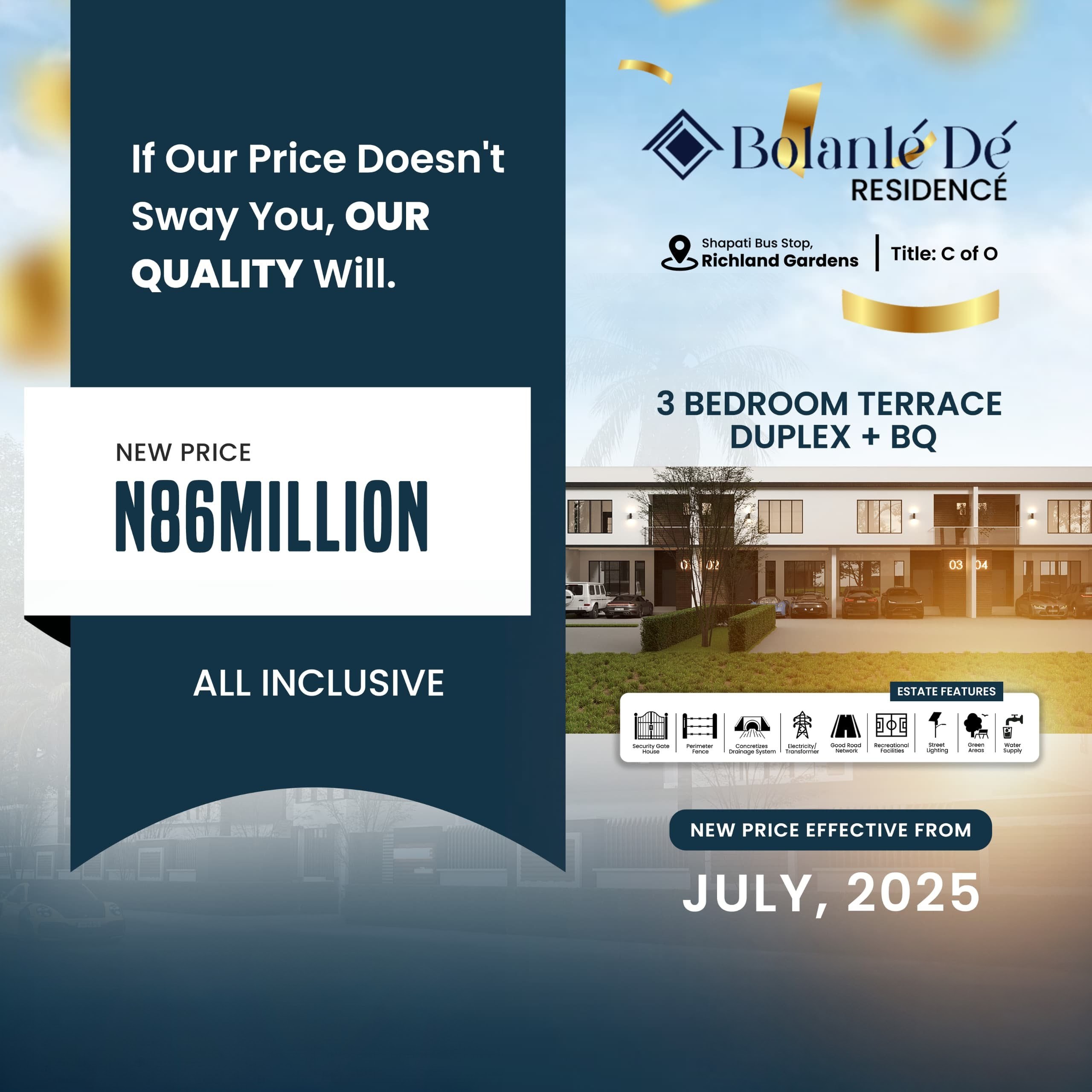 Invest in a Bolanlé Dé Residencé home today and secure your space in the heart of Lagos’s next elite community.