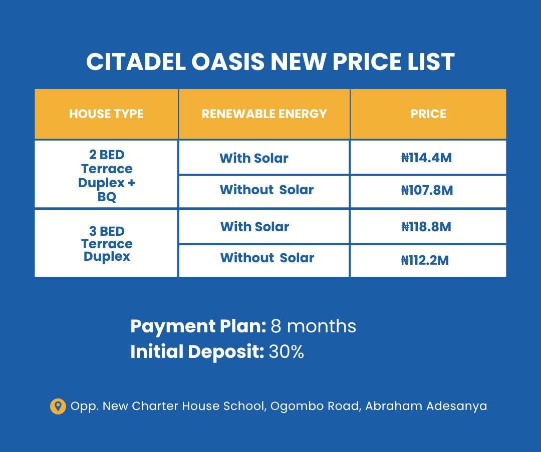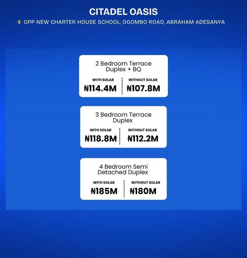 Citadel Oasis - Luxury 2,3 and 4 Bedroom Houses with Solar for sale in Ogombo Ajah, Lagos State Nigeria