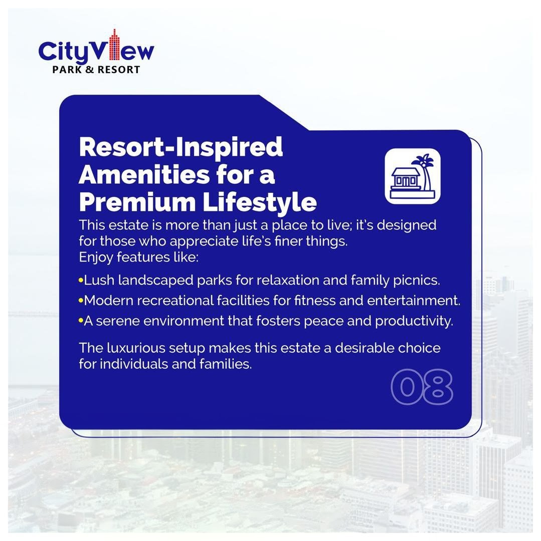 These features position City View Park & Resort as more than just land—it’s a complete lifestyle upgrade in Gwagwalada, Abuja.
