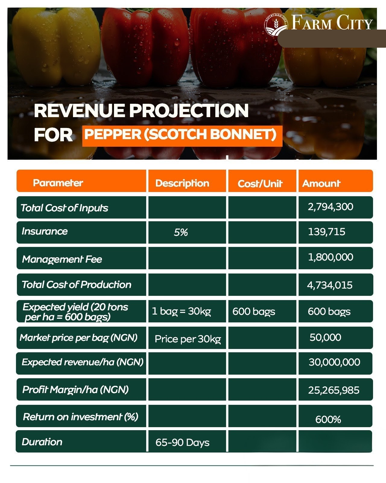 Buy 1 Acre or 1 Hectare of Land and invest in Pepper (Scotch Bonnet)
