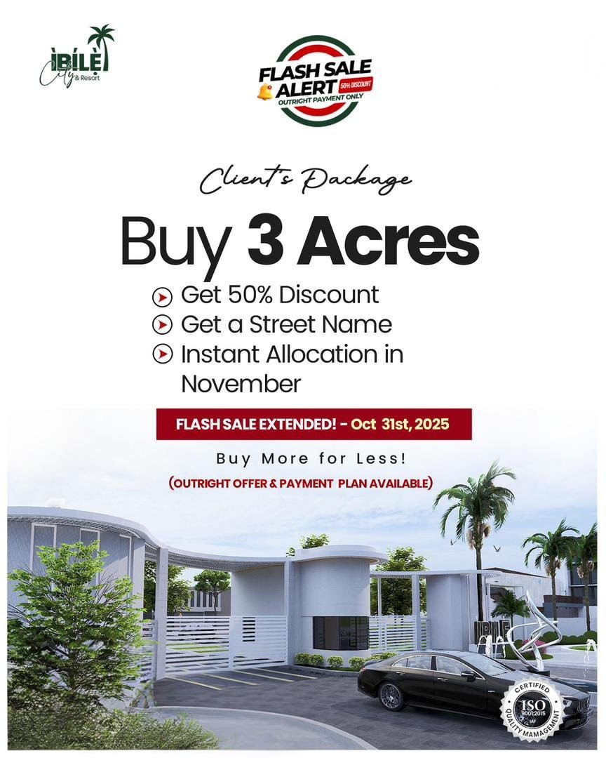 Looking for affordable land for sale in Ikorodu? This is your best chance to own a piece of Lagos at a massive discount! From 23rd September to 31st October 2025, Ibile Imota City is hosting a special Flash Sale on one-time payments only. 🌟