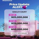 • 500 SQM: Price ₦60,000,000; Initial Deposit ₦20,000,000; Flexible 0-3 months payment plan.