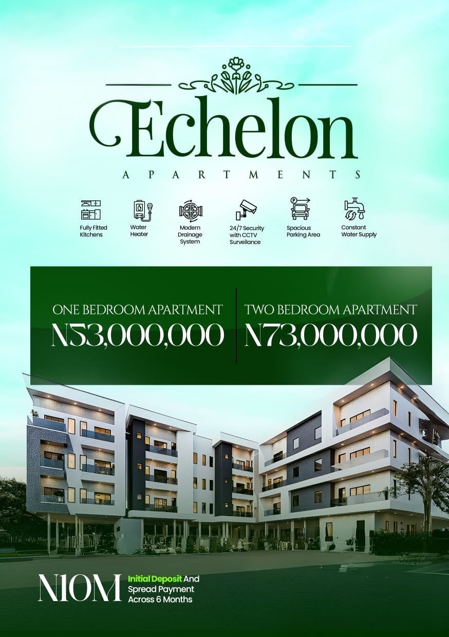 With its premium location and limited availability, The Echelon Apartments offer one of the best real estate investment opportunities in Lagos, ideal for both living and short-let income.