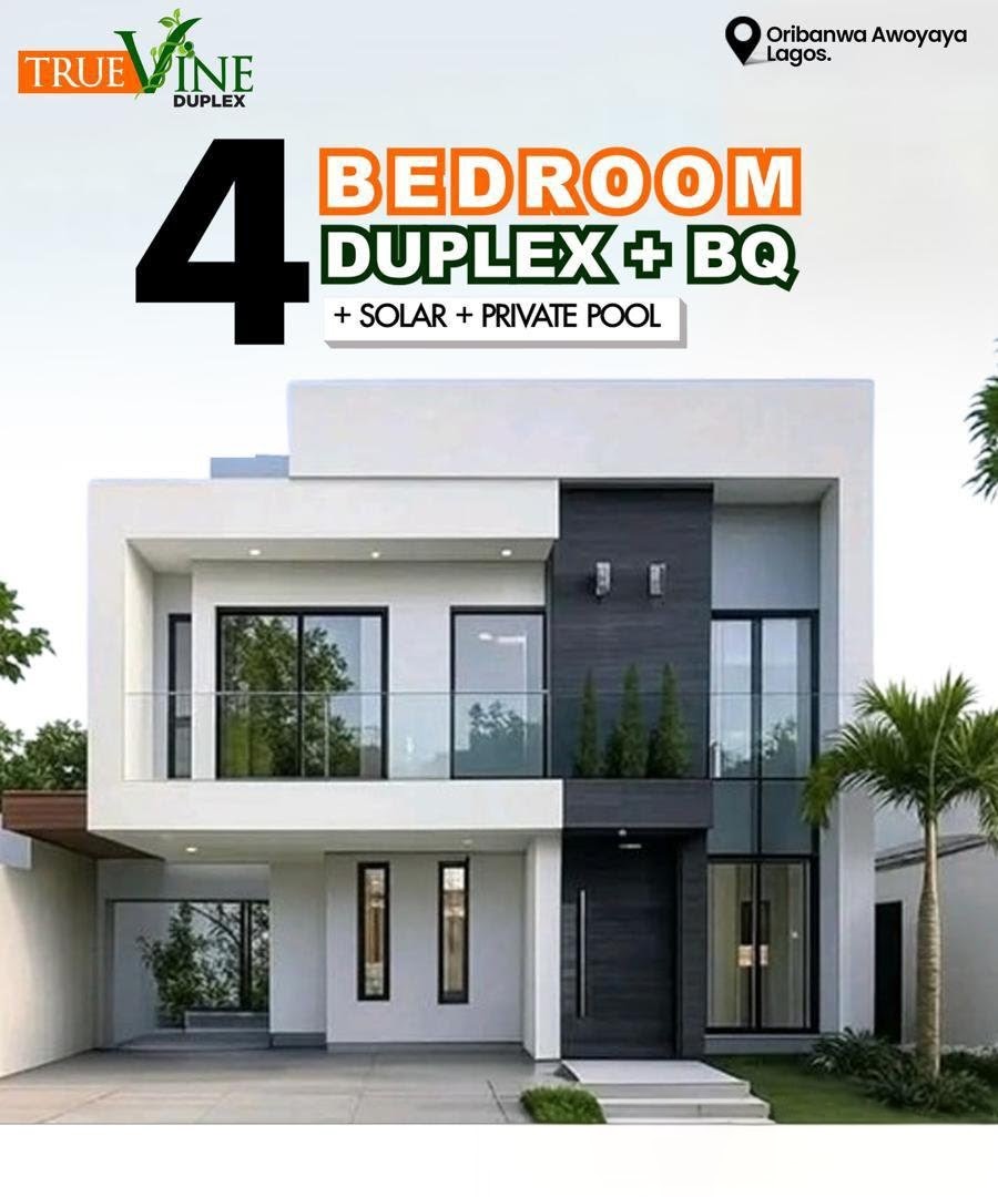 True Vine Duplexes and Bungalows Oribanwa Lagos is a luxury real estate investment designed for families and smart investors who value class, comfort, and modern living. This exclusive estate features a 4-bedroom duplex with BQ and a 3-bedroom detached bungalow, all crafted to deliver a premium lifestyle in a fast-developing Lagos corridor.